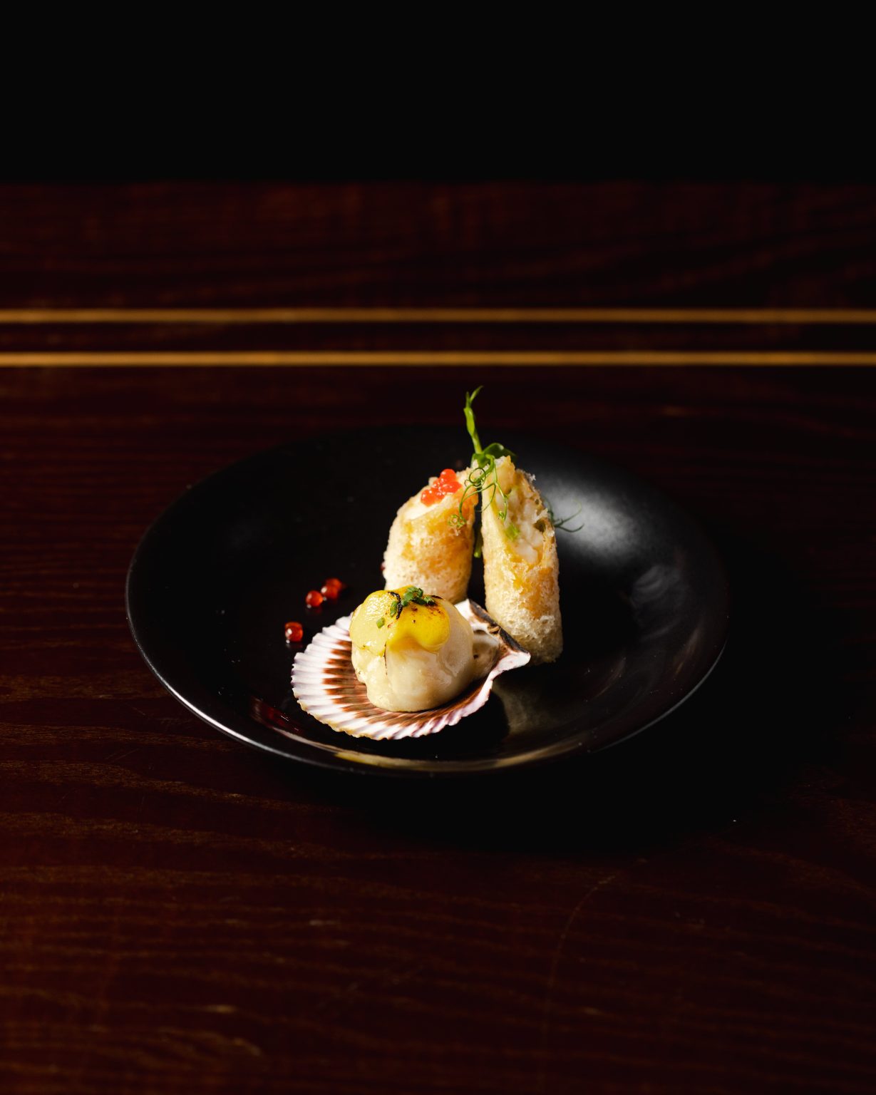 ديم سم على طريقتين مع الكركند ولفائف الجبن بمعجون فول الصويا، وغراتان الإسقلوب، وصلصة الكاري الحارة