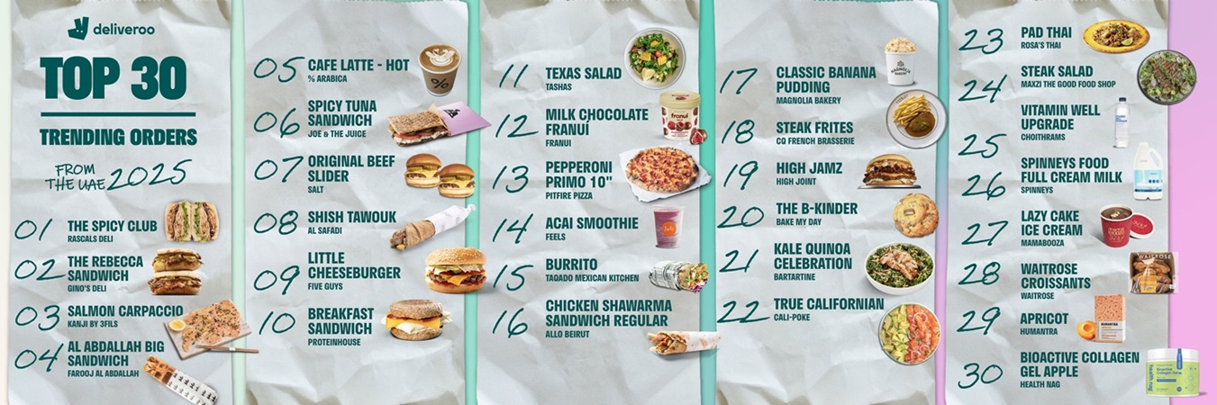 UAE : As the year wraps up, Deliveroo is serving up 2025’s biggest food moments and ordering habits with the release of its much-anticipated annual ‘Deliveroo Top 100 Report’, a rundown of the most sought-after orders from around the world, including a standout selection from the UAE. While 14 UAE favourites secured a spot on this year’s Global Top 100, Deliveroo is, for the first time ever, unveiling its Top 30 Trending Orders in the UAE, a definitive snapshot of what the Emirates craved, clicked and reordered throughout the year, across food, beverages, and everyday essentials.