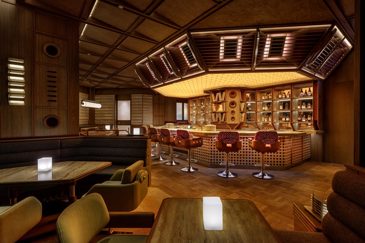 Saikindō’s concept draws inspiration from the Metabolism movement, renowned for its visionary, modular architecture and adaptable design that responds to changing needs. This forward-thinking philosophy is elegantly combined with the warmth of mid-century craftsmanship, creating a space that feels both intimate and social, where innovation meets timeless sophistication. The bar’s interiors will be meticulously composed of unique materials, from rich wooden panelling and bespoke acoustic detailing to intricately embroidered wallpaper and refined furnishings, shaping an intimate yet convivial atmosphere that invites connection and discovery. Every surface, texture, and detail of Saikindō will celebrate artistry, vibrant character and the rhythm of timeless music.