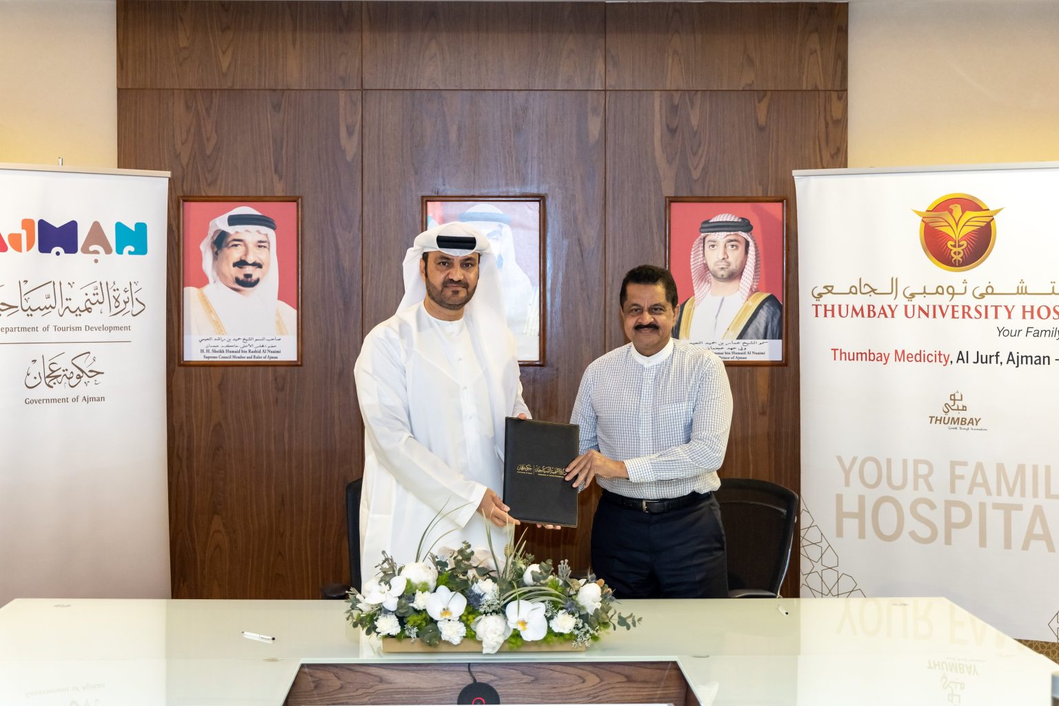 Mr. Sultan Ali Al Nuaimi, Director of Licensing & Tourism Standard Department at ADTD, emphasized the significance of this partnership with Thumbay Group in advancing medical tourism in Ajman. He reaffirmed their commitment to supporting strategic partners and seizing opportunities to develop medical tourism in the emirate, ultimately enhancing the experience of residents and visitors and aligning with the department’s vision.