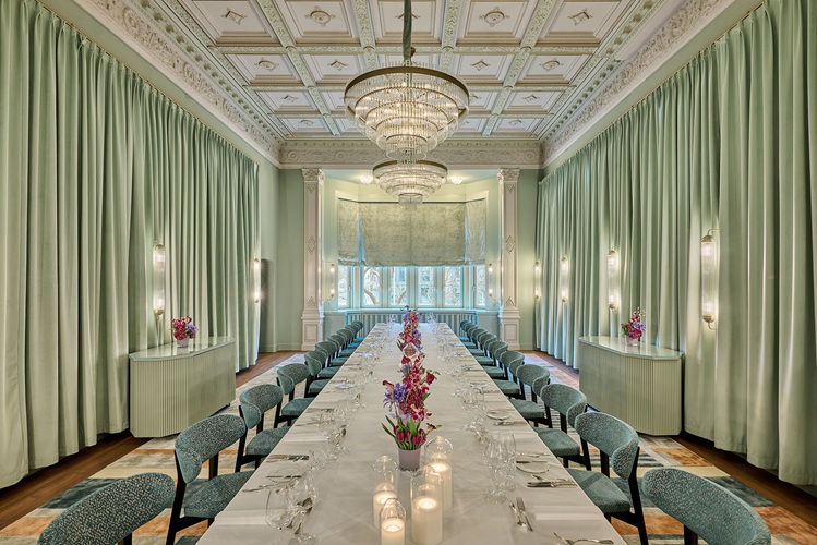 The mansion’s historic salons and event spaces include the Entrance Hall—complete with a mezzanine gallery and a Frankfurt-style kitchen—the Blue Salon, the Green Salon, the Ladies’ Withdrawing Room, the Winter Garden, the Wine Tasting Room, and the Wine Lounge. All these spaces can be booked individually or in combination with the entire Villa, making them ideal for weddings, meetings, private gatherings, receptions, and curated events. As part of THE FLORENTIN, The Villa seamlessly blends the structure of a luxury hotel with the exclusivity of a private family residence. It caters to independent travellers, long-stay guests, corporations, event planners, and individuals seeking venues with historic character and a distinct architectural identity for festive celebrations and special events.