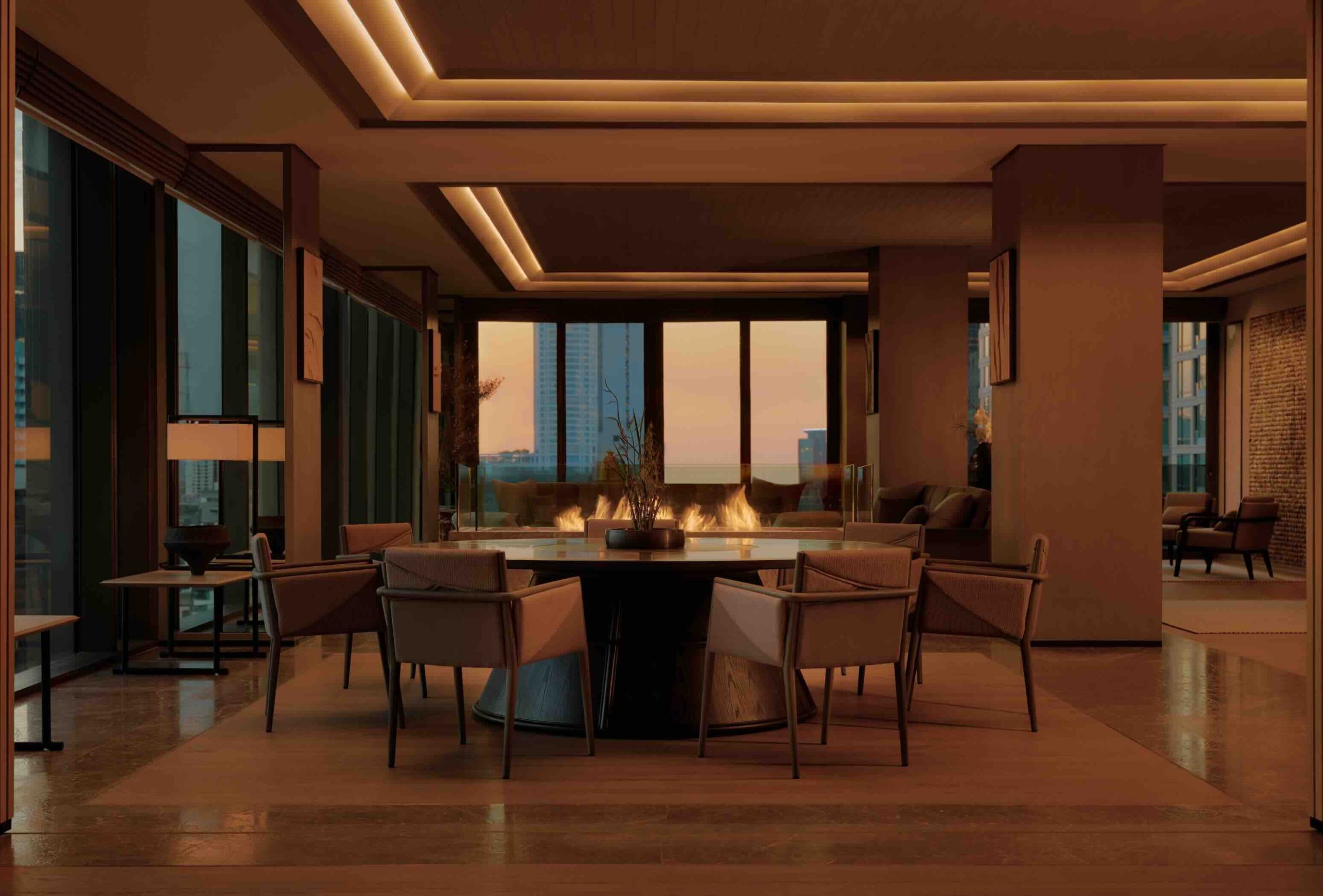 Yet what truly sets the Aman Suite apart is its exceptional array of private amenities, most notably including a dedicated spa, a feature rarely found in the comfort of one’s own hotel suite. Echoing the credentials of the wellness floors below, the private retreat features hot and cold plunge pools, a sauna, steam room and a tranquil water feature designed to reflect the calming ambience of an Aman Spa. Equally impressive is the state-of-the-art cinema and entertainment room, thoughtfully designed with tiered seating and an acoustic soundproof system to deliver an immersive, theatre-like experience. A spacious private study completes the offering, providing an elegant yet functional place for work or reflection.