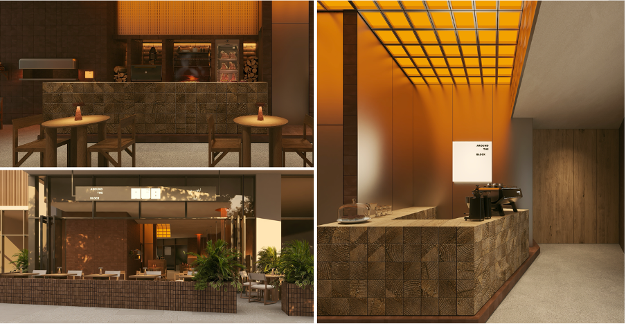 Beyond the menu, the duality of the concept is embedded in the very fabric of the venue. Designed in collaboration with Abdalla Almulla, founder of MULA and one of the UAE’s leading design voices, the interiors were created to evolve naturally with the rhythm of the day. By pairing organic materials like raw wood logs with industrial accents of steel and concrete, the space feels grounded, tactile, and real. Lighter tones define the openness of Around the Block, while deeper textures and warm lighting anchor the evening persona of CHAR. From seating flow to acoustics, every design detail was considered to guide this transformation – creating a space that’s not only functional, but emotionally resonant.